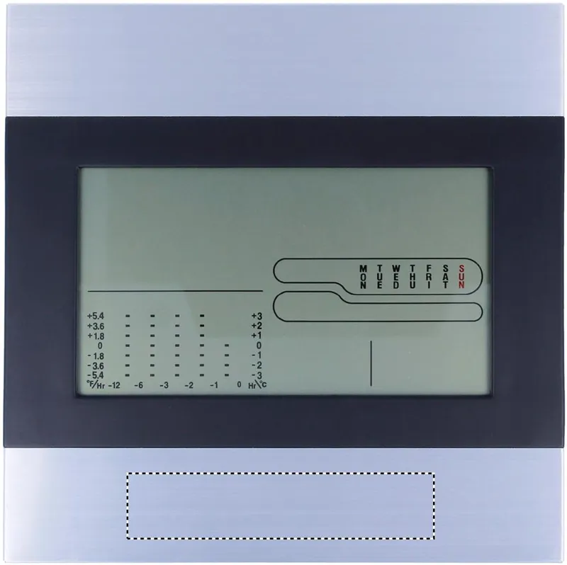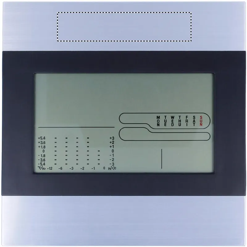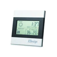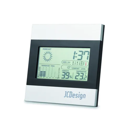 Fekete és szürke időjárás állomás. Hőmérséklet- és páratartalom mérővel, órával, illetve naptár funkcióval. 2 db AAA elemmel működik, elem nélkül szállítjuk.