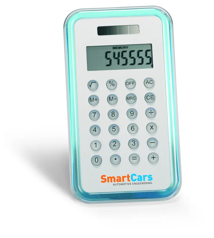 8 számjegyes, napelemmel és elemről is működtethető számológép, alumínium előlappal. A működéshez szükséges 1 db LR1130/LR54 gombelemmel szállítjuk.