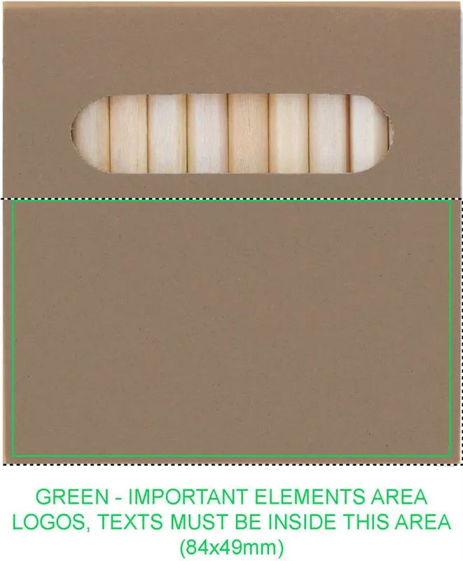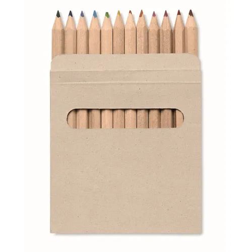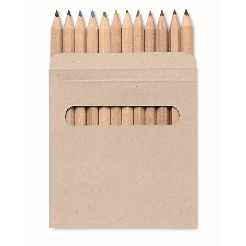 12 színes ceruza natúr, újrahasznosított papír dobozban.