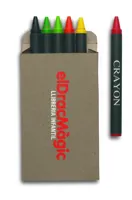 6 színes zsírkréta újrahasznosított papír dobozban. Nem mérgező.