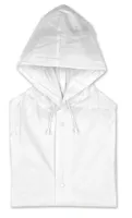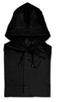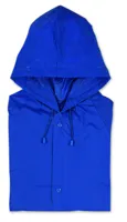 Kapucnis esőkabát PVC anyagból. Patenttal záródik.