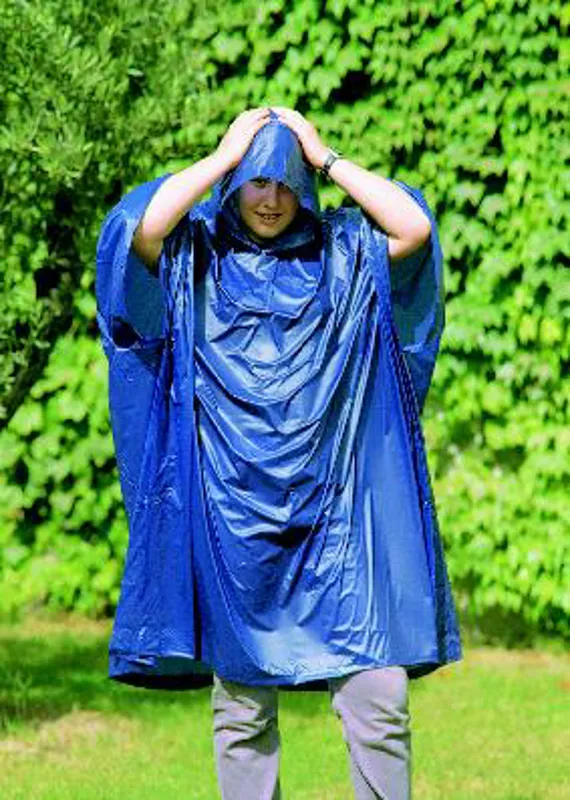Összehajtható műanyag kapucnis esőkabát tokban.
