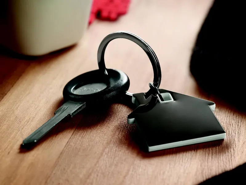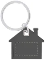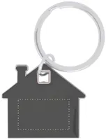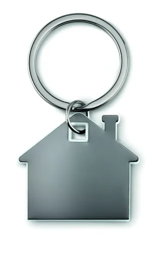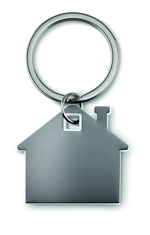 Ház alakú rozsdamentes acél és ABS műanyag kulcstartó.