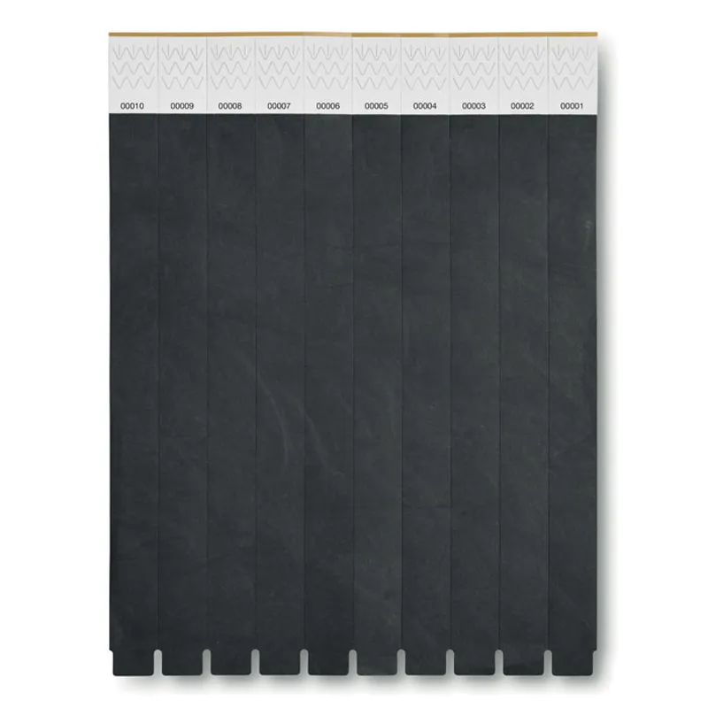 10 db DuPont ™ Tyvek® rendezvény karszalagból álló ív. 19 mm széles. Egyedi számozással minden karszalagon.