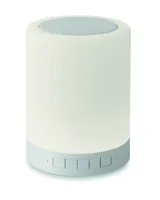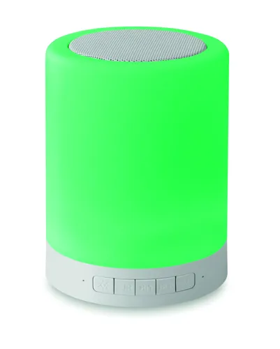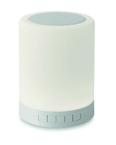 Asztali hangszóró telefon kihangosító funkcióval. SD kártya olvasó. Érintéssel szabályozható a fény színe és erőssége. 6 különböző szín. Újratölthető 2000 mAh lítium-ion elemmel. Teljesítmény: 3W. Üzemidő kb. 2 óra.