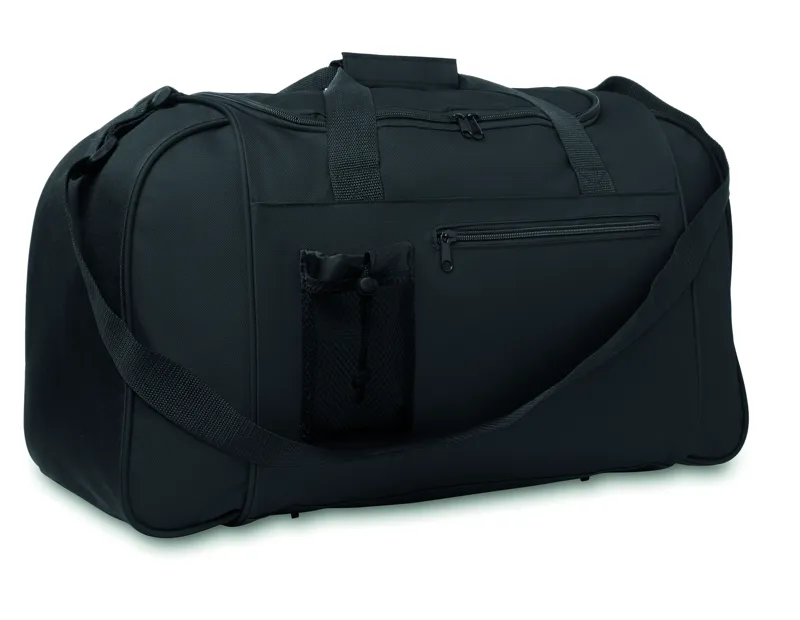 600D poliészter sport- vagy utazótáska. Elülső zsebbel. Állítható és levehető vállpánttal.