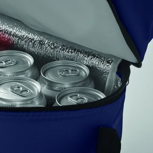 600D poliészter hűtőtáska. 2 rekesszel, alumínium fólia béléssel. Állítható vállpánt.