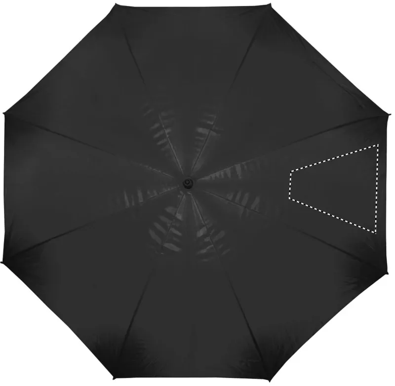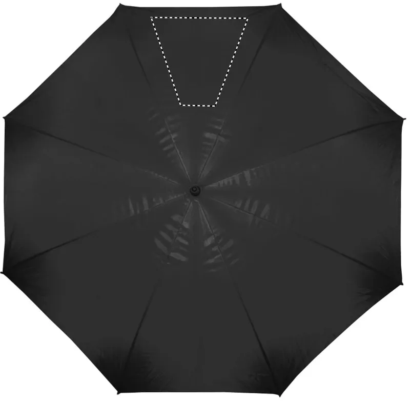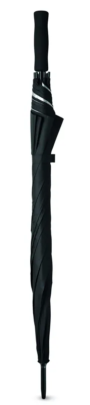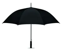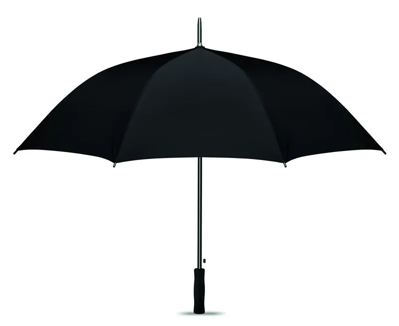 27 colos automata esernyő 190T poliészter anyagból. Ezüst színű belső borítás. Fekete bevonatú fém nyél és váz. Fekete műanyag csúcsok. Fekete egyenes EVA markolat. Manuális záródás.