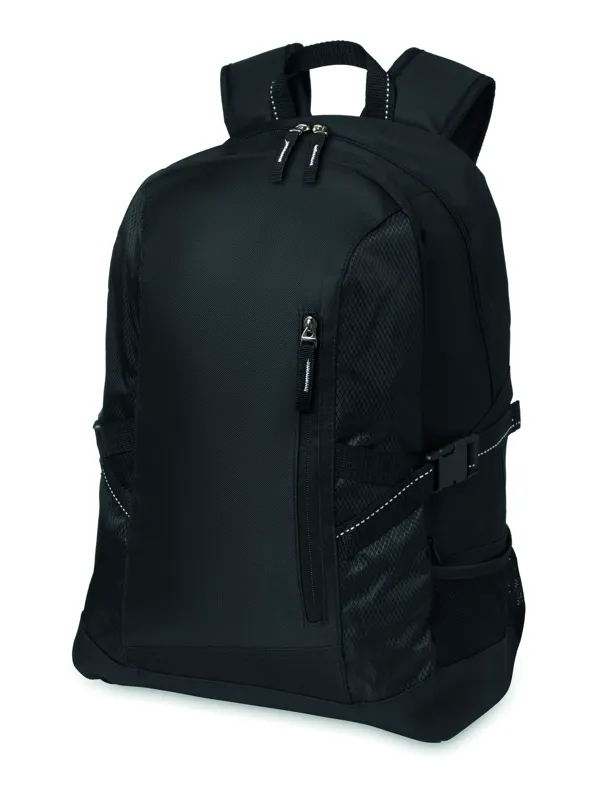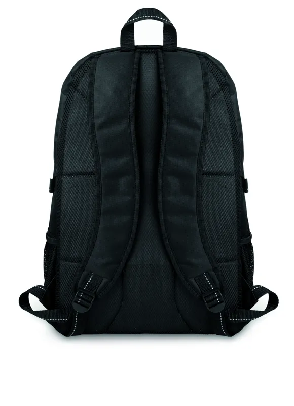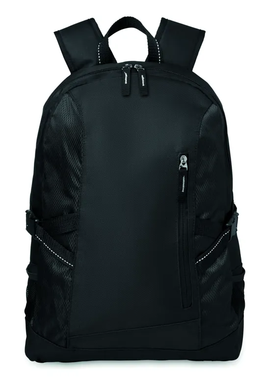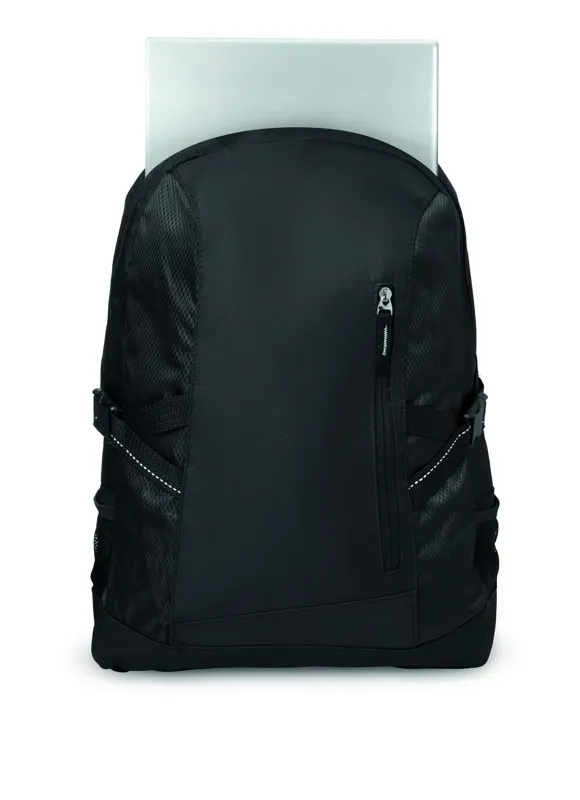 15 colos laptop hátitáska 600D poliészter anyagból. Ripstop díszítés. Belső laptoptartó rekesz. Egy fő cipzározható elülső zseb és 2 oldalsó rekesz. Állítható vállpánt.