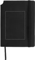 A5 jegyzetfüzet puha PU borítóval. Cérnafűzött. 160 vonalas oldal (80 lap) újrahasznosított papírból. Hozzáillő elasztikus zárópánt és könyvjelző szalag. Irattartó zseb a hátsó borító belső oldalán. Tolltartó a gerincben.