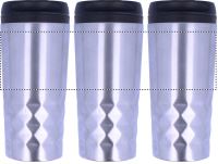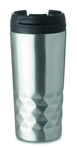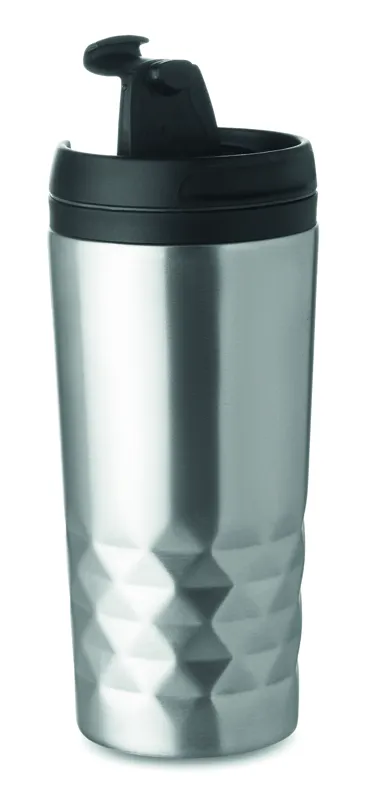 Duplafalú rozsdamentes acél úti bögre. PP belső rész. Űrtartalom: 280 ml.