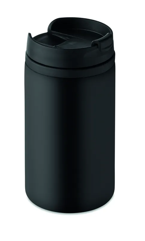 Duplafalú rozsdamentes acél bögre. PP belső rész. Űrtartalom: 250 ml. Szivárgásmentes.