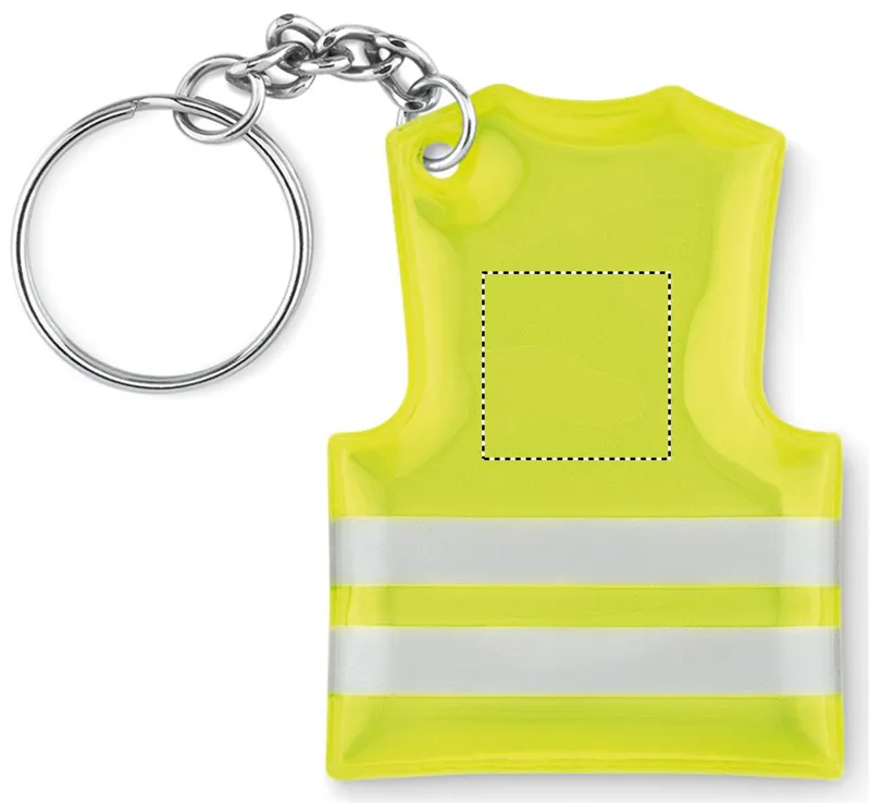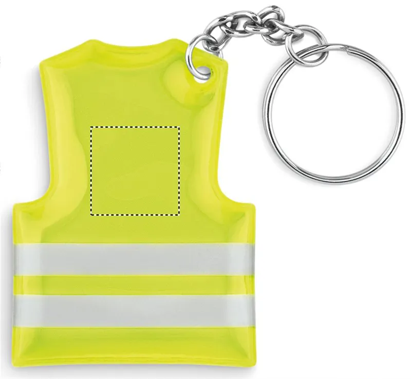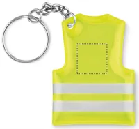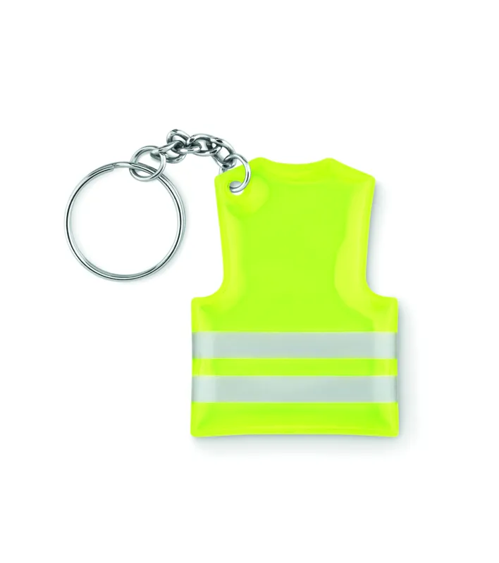 Mellény alakú fényvisszaverő PVC kulcstartó.