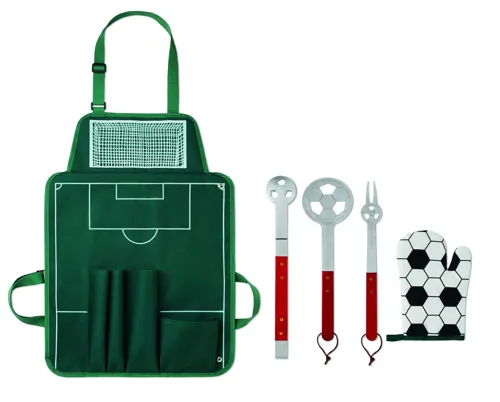 600D poliészter kötény 3 különböző grillező eszközzel és egy kesztyűvel.