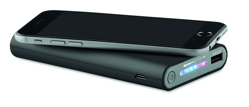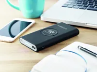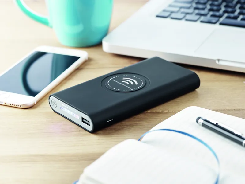 Vezeték nélkül töltő és töltődő, 8000 mAh kapacitású külső akkumulátor. Kábellel és vezeték nélkül is tölthető. C típusú csatlakozóval. Akkumulátor teljesítmény DC5V/2.1A. Vezeték nélküli teljesítmény DC5V/1A. Vezeték nélk