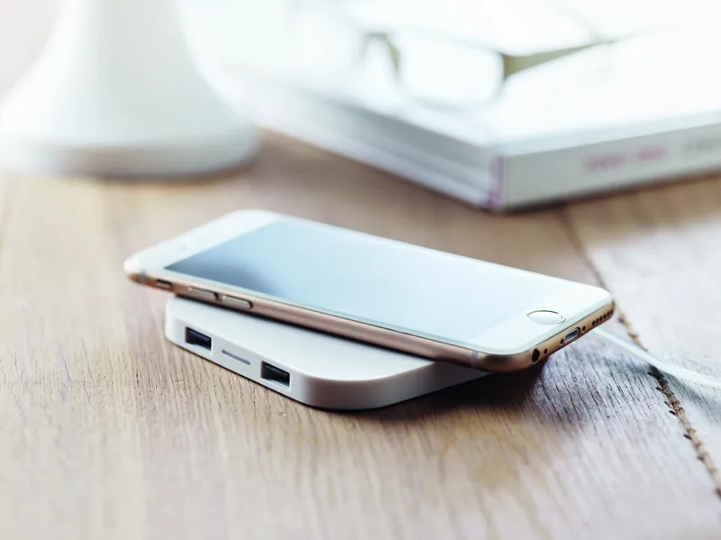 Töltőállomás 2 portos 2.0 csatlakozóval és USB csatlakozóval a számítógéphez, mellyel vezeték nélküli töltőállomássá alakítható okostelefonok számára. Teljesítmény: DC5V/1A (5W).