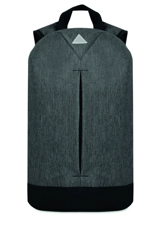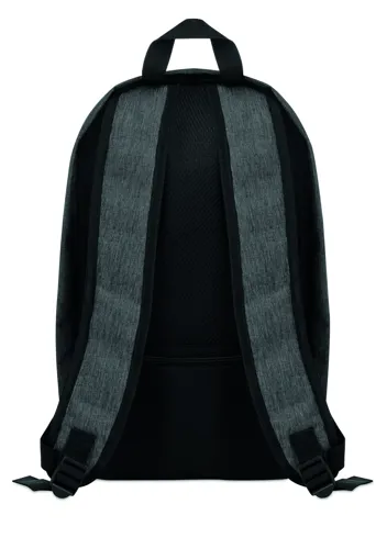 Melírozott 600D poliészter hátitáska párnázott vállpántokkal, 13 colos laptop tároló rekesszel. A fő cipzáras rész a hátoldalon záródik a jobb védelem érdekében.
