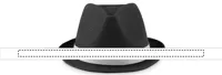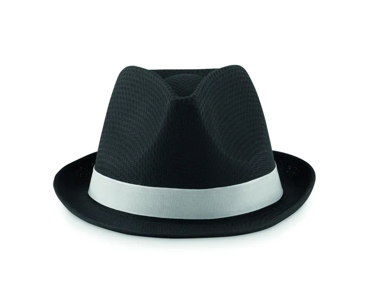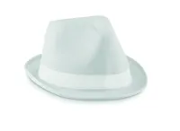 Színes poliészter kalap fehér szalaggal. Embléma nélküli rendelések esetén a szalagot külön, nem a kalaphoz rögzítve szállítjuk.