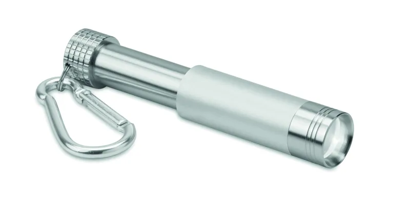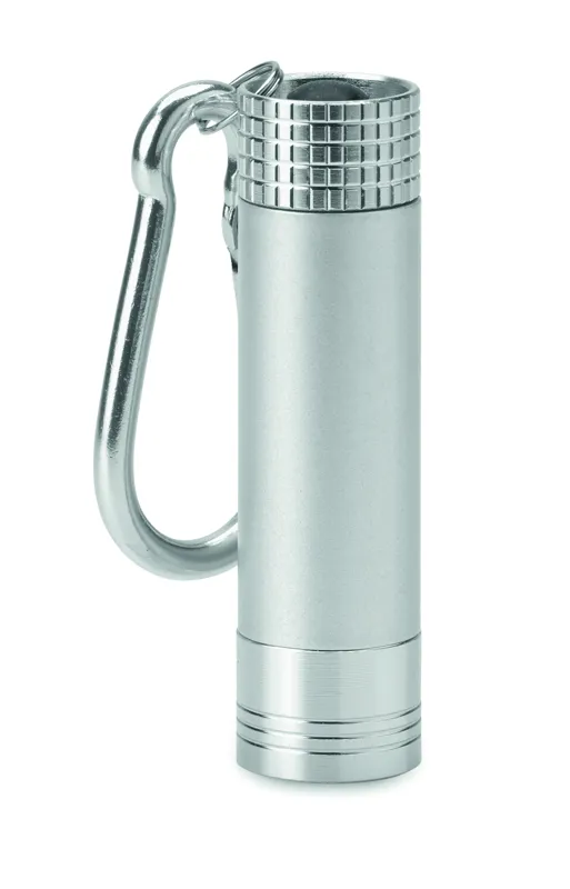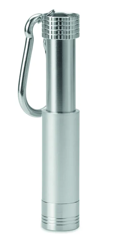 Mini kulcstartó alumíniumból és ABS műanyagból. Gravírozás esetén a céglogó a bekapcsolt lámpán átviláglik. A működéshez szükséges 4 db LR44 gombelemmel szállítjuk.