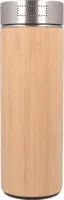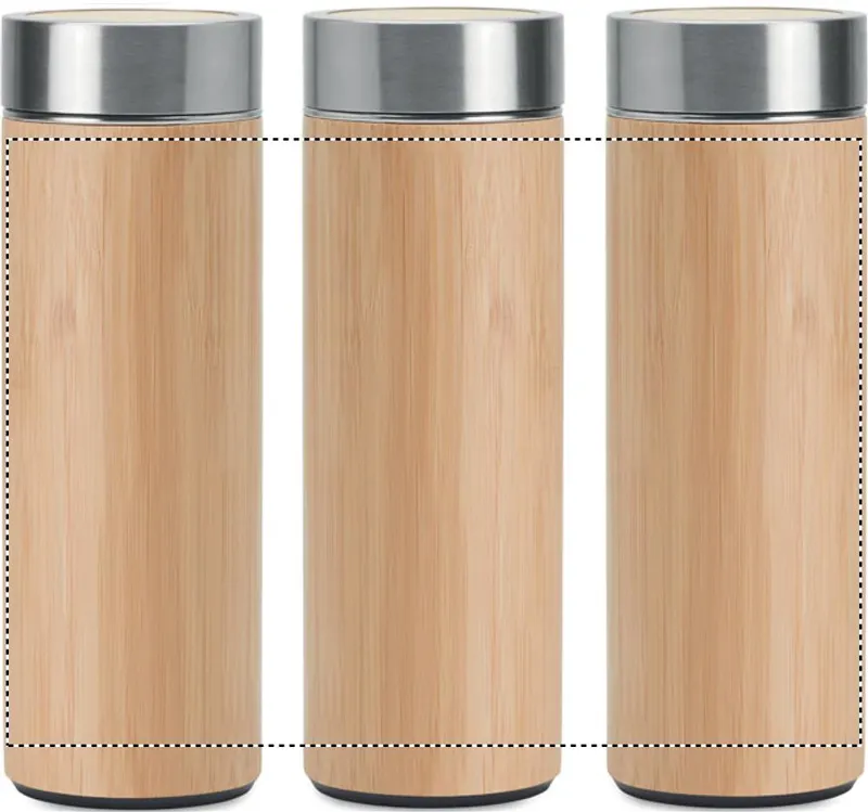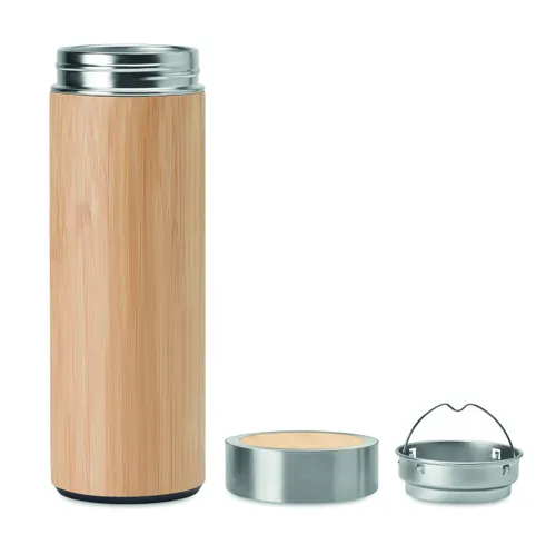Duplafalú rozsdamentes acél termosz bambusz borítással, teaszűrővel. 400 ml űrtartalom. A bambusz természetes anyag, színében, mintázatában és méretében esetenként eltérő lehet. FSC®-certified | FSC 100%, N5.7, FSC-C213206