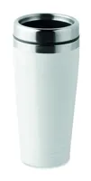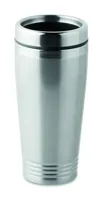 Rozsdamentes acél duplafalú úti bögre fekete PP fedéllel. Űrtartalom: 400 ml.