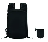Összehajtható sport hátizsák ripstop (hasadásgátló) poliészter anyagból, elől cipzáras nyitással, hálós vállpántokkal, levehető tokkal.