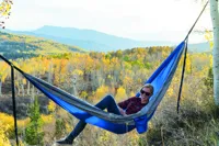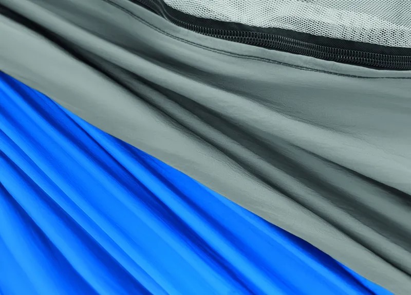 Függőágy integrált szúnyoghálóval. Könnyű és erős nejlon anyagból készült. A hozzá tartozó pánttal és karabinerekkel könnyen felállítható. Teherbírás: 200 kg.