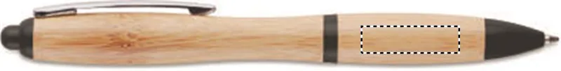 Nyomógombos golyóstoll bambusz toltesttel, ABS részekkel. Kéken író betéttel. A bambusz természetes anyag, színében, mintázatában és méretében esetenként eltérő lehet.