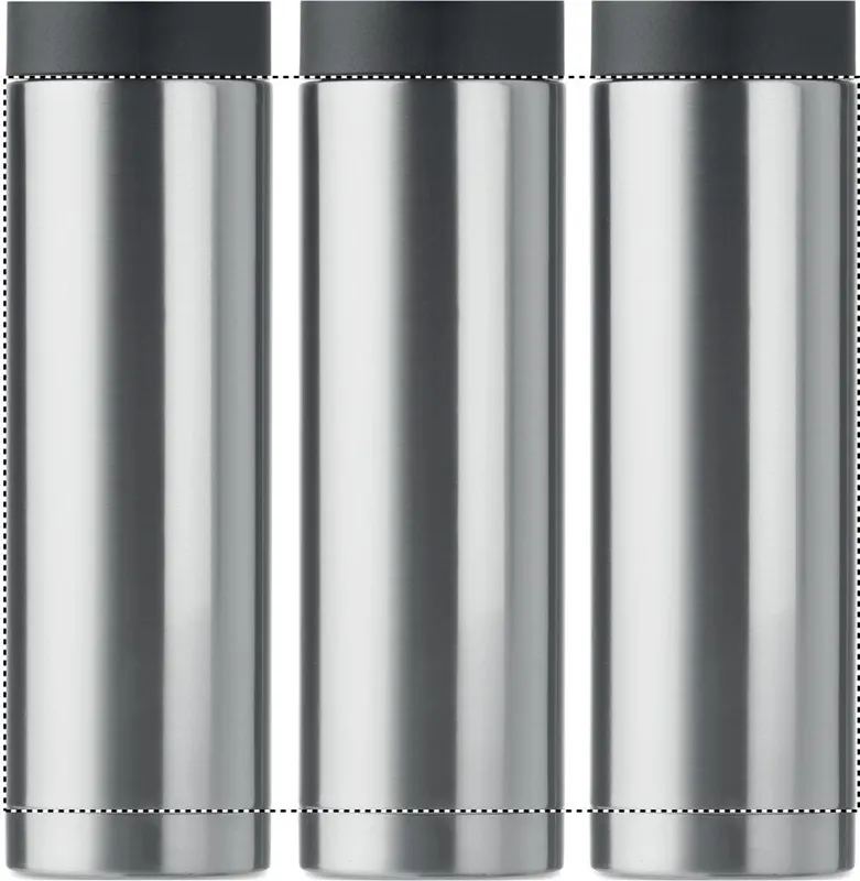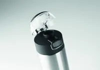 Rozsdamentes acélból készült, duplafalú palack a kupakon biztonsági zárral. Nyomógombbal nyitható. A tetején lévő lehajtható fogantyúval könnyen szállítható. 400 ml űrtartalom. Szivárgásmentes.