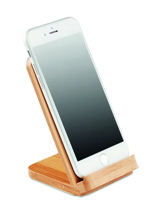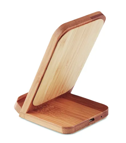 Dupla tekercses vezeték nélküli töltő egy eszköz számára, bambusz házzal, állvány funkcióval. Teljesítmény DC5V/1A (15W). A bambusz természetes anyag, színében, mintázatában és méretében esetenként eltérő lehet. A bambusz természe