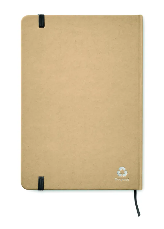 A5 jegyzetfüzet újrahasznosított karton keménytáblás borítóval. Cérnafűzött. 160 vonalas oldal (80 lap) újrahasznosított papírból. Elasztikus zárópánt, könyvjelző szalag. FSC®-certified | FSC MIX CREDIT, P7.1, FSC-C213206