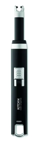 USB-ről tölthető elektromos szikragyújtó. 220 mAh lítium-ion tölthető elemmel, USB töltőkábellel szállítjuk.