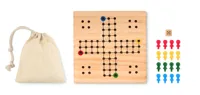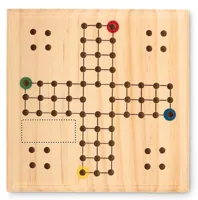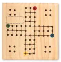 Klasszikus stratégiai társasjáték kompakt szettben. A Ki nevet a végén egy stratégiai elemekkel tarkított gyors és izgalmas versenyfutás a célba érésig, két-négy játékos számára. A játékosok kockadobás alapján haladnak a választott színükhöz tartozó, négy darab figurájukkal a rajttól a célig. A cél, hogy a bábukat elsőként juttassák el a kijelölt célterületre. A játékot pamut tasakban szállítjuk, 1 dobókockát és 16 játékfigurát tartalmaz 4 különböző színben. FSC®-certified | FSC 100%, W15.2, FSC-C213206
