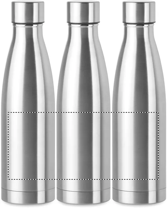 Duplafalú rozsdamentes acél termoszpalack. Űrtartalom 500 ml. Szivárgásmentes.