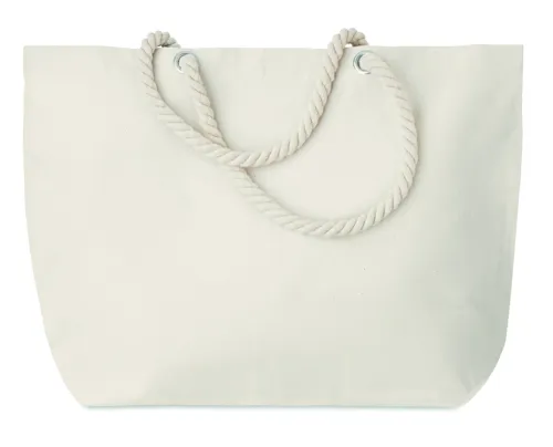 Strand- vagy bevásárlótáska 220 g vastag pamutvászonból, kötél füllel.