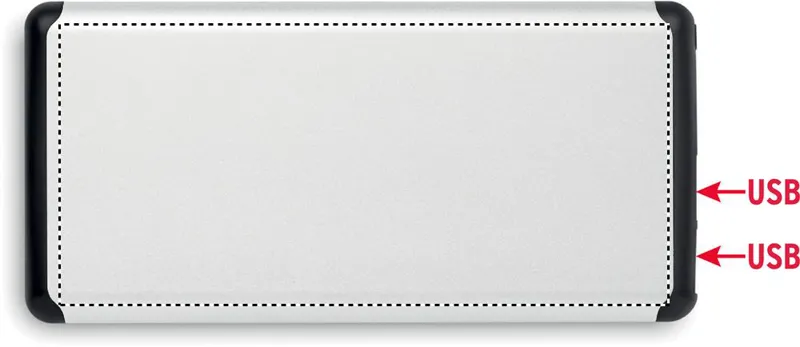 10.000 mAh külső akkumulátor újrahasznosított alumínium házban, a telefonhasználat közbeni töltést segítő tapadókorongokkal. Vezeték nélküli teljesítmény 2A, PD (Power Delivery) támogatással a legújabb laptopok töltéséhez.