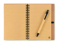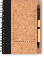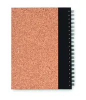 Parafa jegyzetfüzet tollal. Parafa puhafedeles borító. Ikerspirálozott. 140 vonalas oldal (70 lap) újrahasznosított papírból. Hozzáillő nyomógombos golyóstoll, újrahasznosított karton tolltesttel és kukorica PLA szerelvényekkel. Feketén író betéttel. Elasztikus tolltartó hurok. A parafa 100%-ban természetes anyag. Szerkezeti jellege és felületi porozitása miatt az egyes tárgyak végső emblémázási eredménye eltéréseket mutathat.