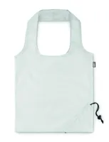 Összehajtható bevásárlótáska 190T RPET anyagból. A táska egyik sarkában kialakított praktikus húzózsinóros résznek köszönhetően kicsire összehúzható. A szublimációs nyomtatás csak a fehér színű terméken érhető el.