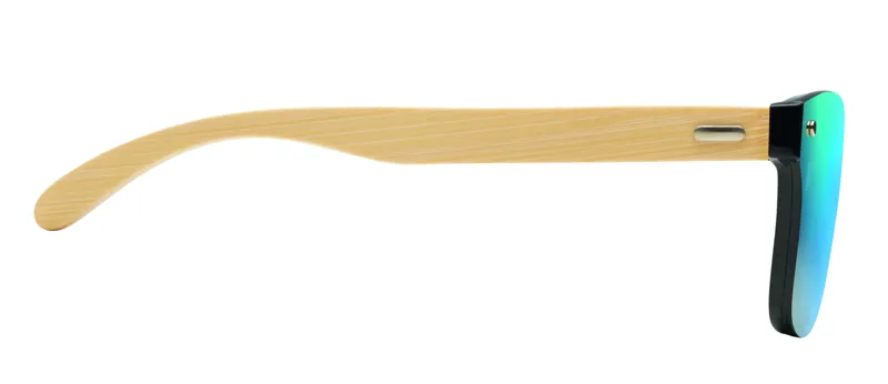 Napszemüveg bambusz szárral és teljes felületű, tükröződő lencsével. UV400-as védelem. A bambusz természetes anyag, a szín termékenként eltérő lehet.