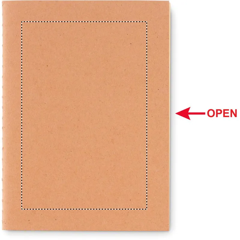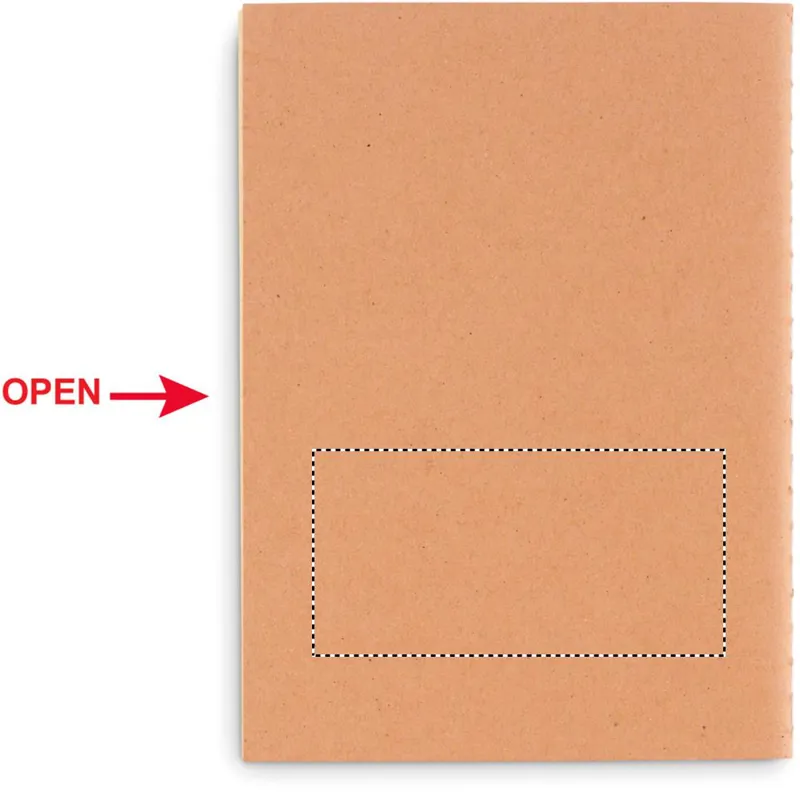 A6 jegyzetfüzet újrahasznosított karton borítóval. Varrott gerinccel. 80 sima oldal (40 lap), újrahasznosított papírból. FSC®-certified | FSC MIX, P7.1, FSC-C213206