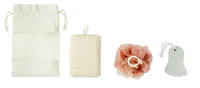 Fürdőszett szivaccsal, habkővel, fürdőrózsával. PEVA ablakos pamutvászon zsákban szállítjuk.