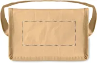 Szövött, újrahasznosított papírból készült hűtőtáska, 6 üdítősdoboznyi méret. Első zsebbel, hordfüllel. Szigetelő anyag: alumínium fóliával laminált hab. Űrtartalom 3 l.