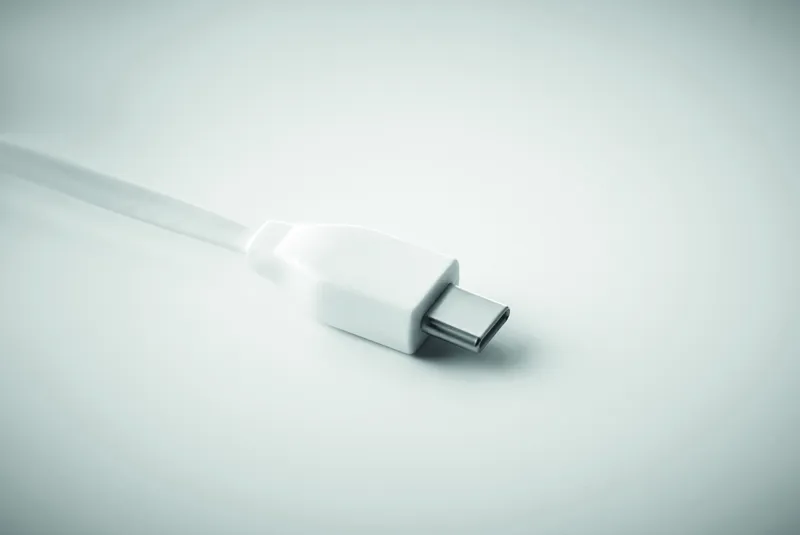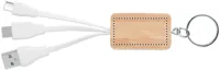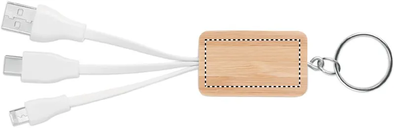 Kulcstartó bambusz borítással, USB-A, mikro-B és C típusú csatlakozókábellel. A bambusz természetes anyag, színében, mintázatában és méretében esetenként eltérő lehet.